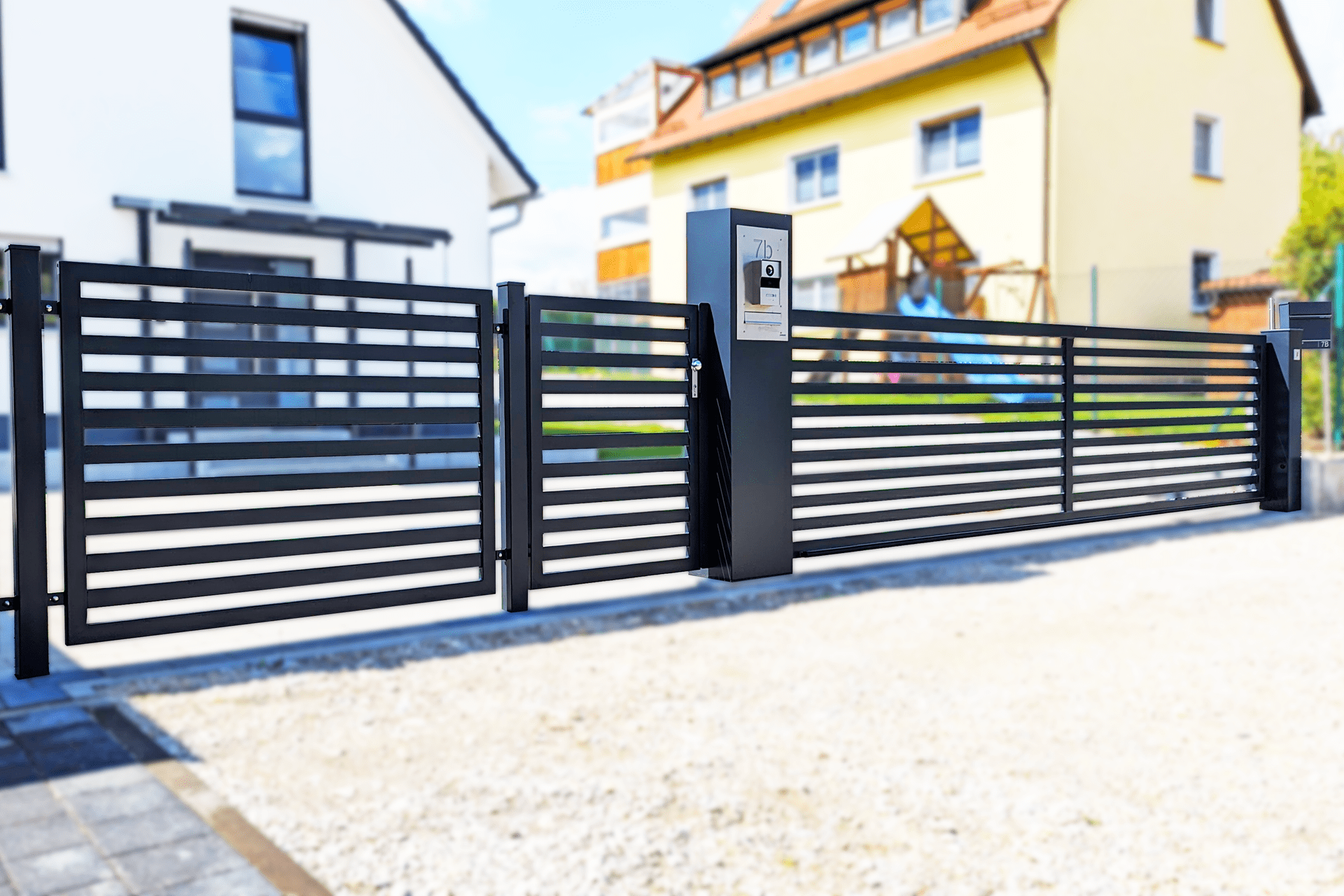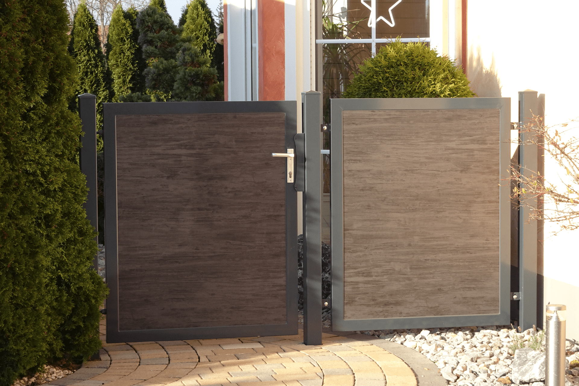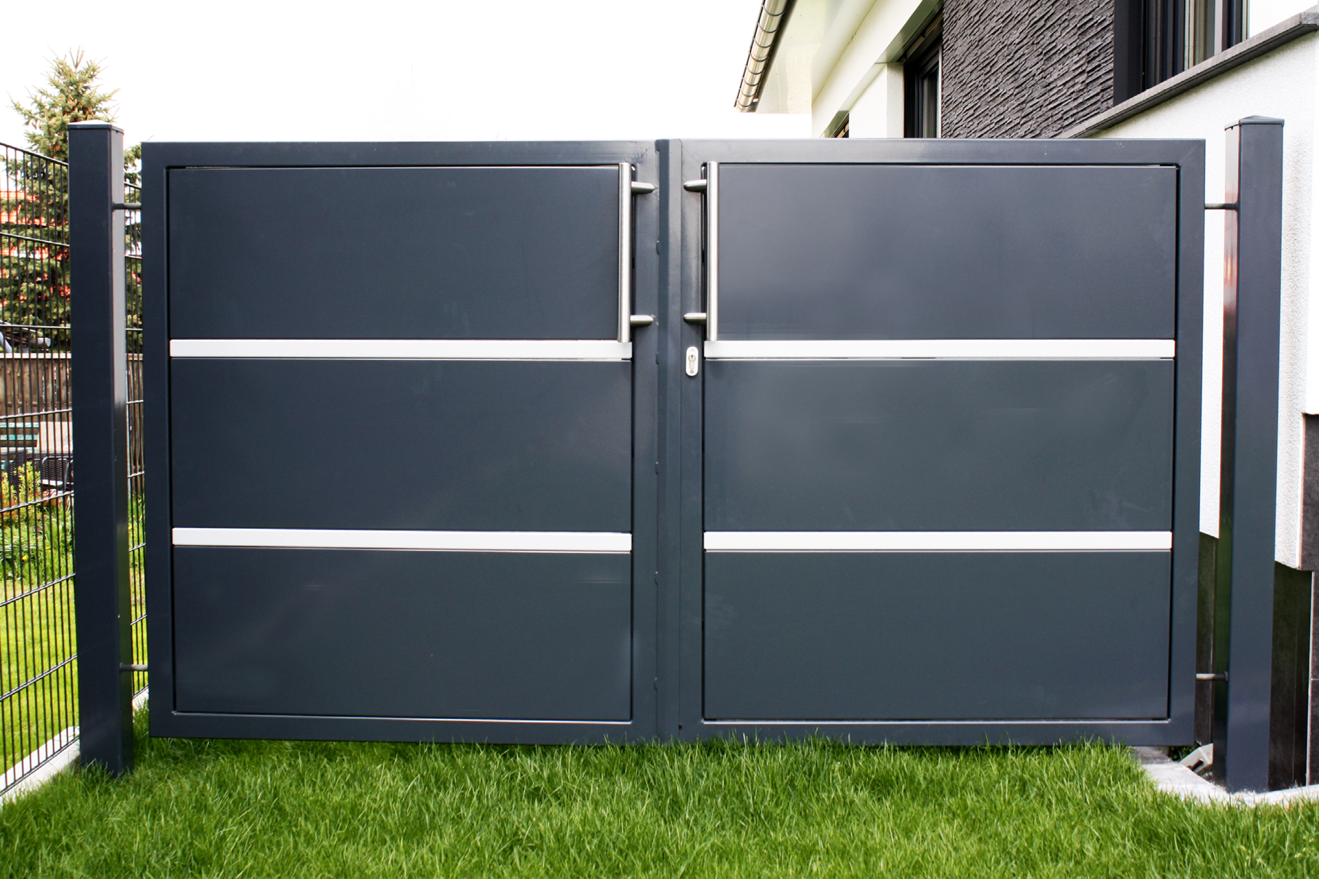 Die stabile Bauweise eignet sich für hohe Beanspruchung und eine lange Lebensdauer. Dank der Feuerverzinkung und wahlweise eine zusätzliche Pulverbeschichtung in Wunschfarbe, wird das Tor vor Korrosion geschützt.